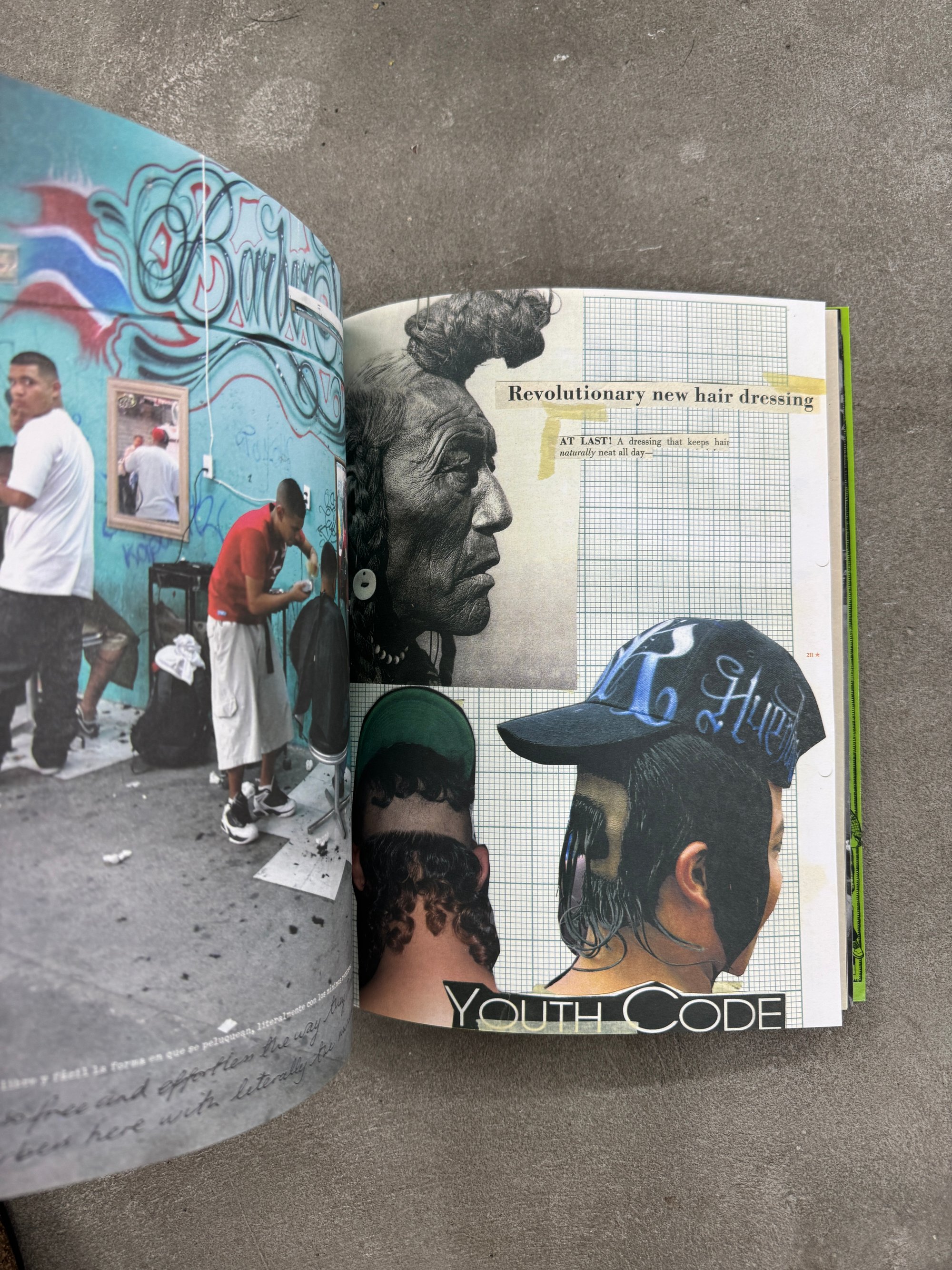 Massive book on Cholombianos, a Mexican youth subculture known for its highly distinctive dress code, sculptural hairstyles and love of Cumbia music. Super nice design, often utilizing collage alongside varied paper stocks and formats. Highly recommended!