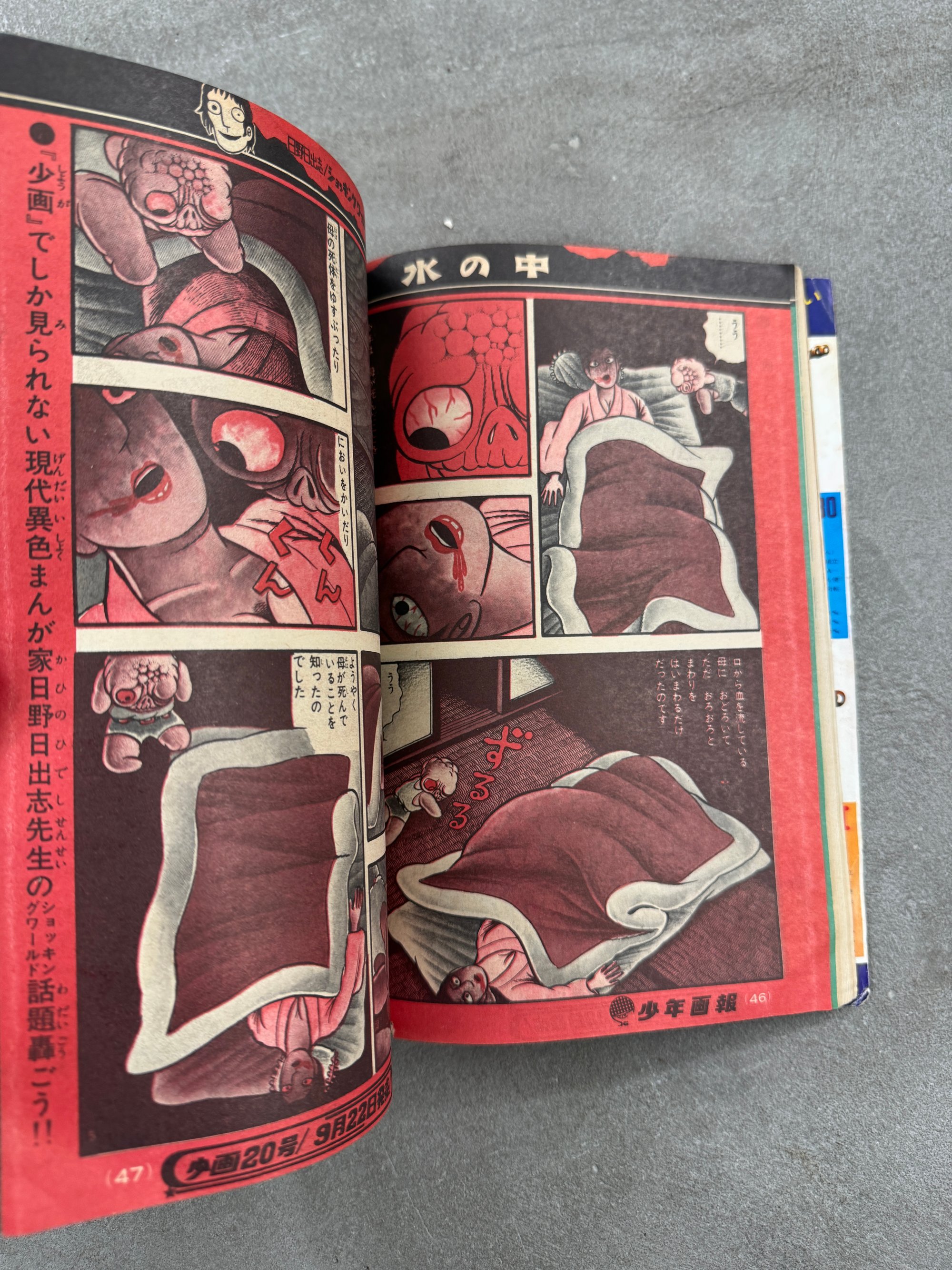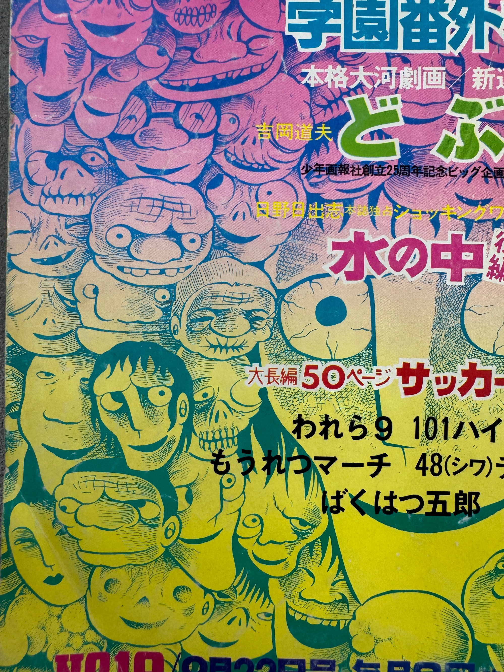 Very sick Hideshi Hino cover and completely age inappropriate story in this Shonen Gaho from 1970. Also a bit of Bakabon for good measure.